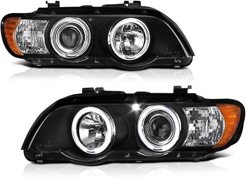 Bmw X5 E53 2000 2003 Black Angel Eye Halo Projector Headlights Headlamps Pair Headlight Assemblies External Lights Indicators Bmw X5 E53 Bmw X5 Bmw